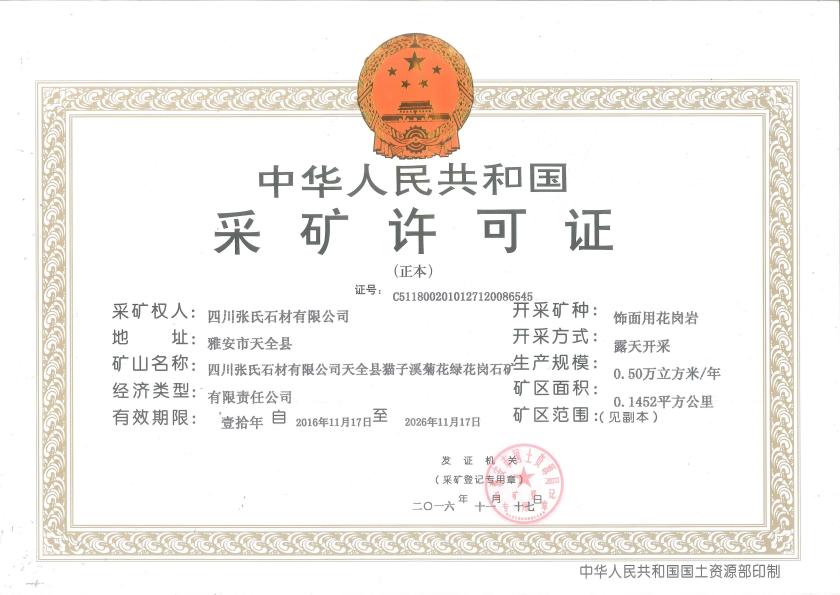菊花绿麻出产于四川雅安天全山脉以西,矿区海拔2400米,成矿十亿年以上,是北纬30度的地质奇迹之一,是稀有的天然花岗石品种。矿山储藏量多达42.68万立方米,厂区占地58亩,场房10000平方米。年生产板材20万平方米,各类石材线条30万米。